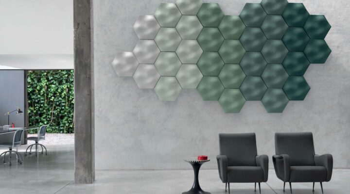 Deca Collection A range of design sound absorbing panels made of polyester fibre, a recycled material obtained by recycling PET bottles, and…