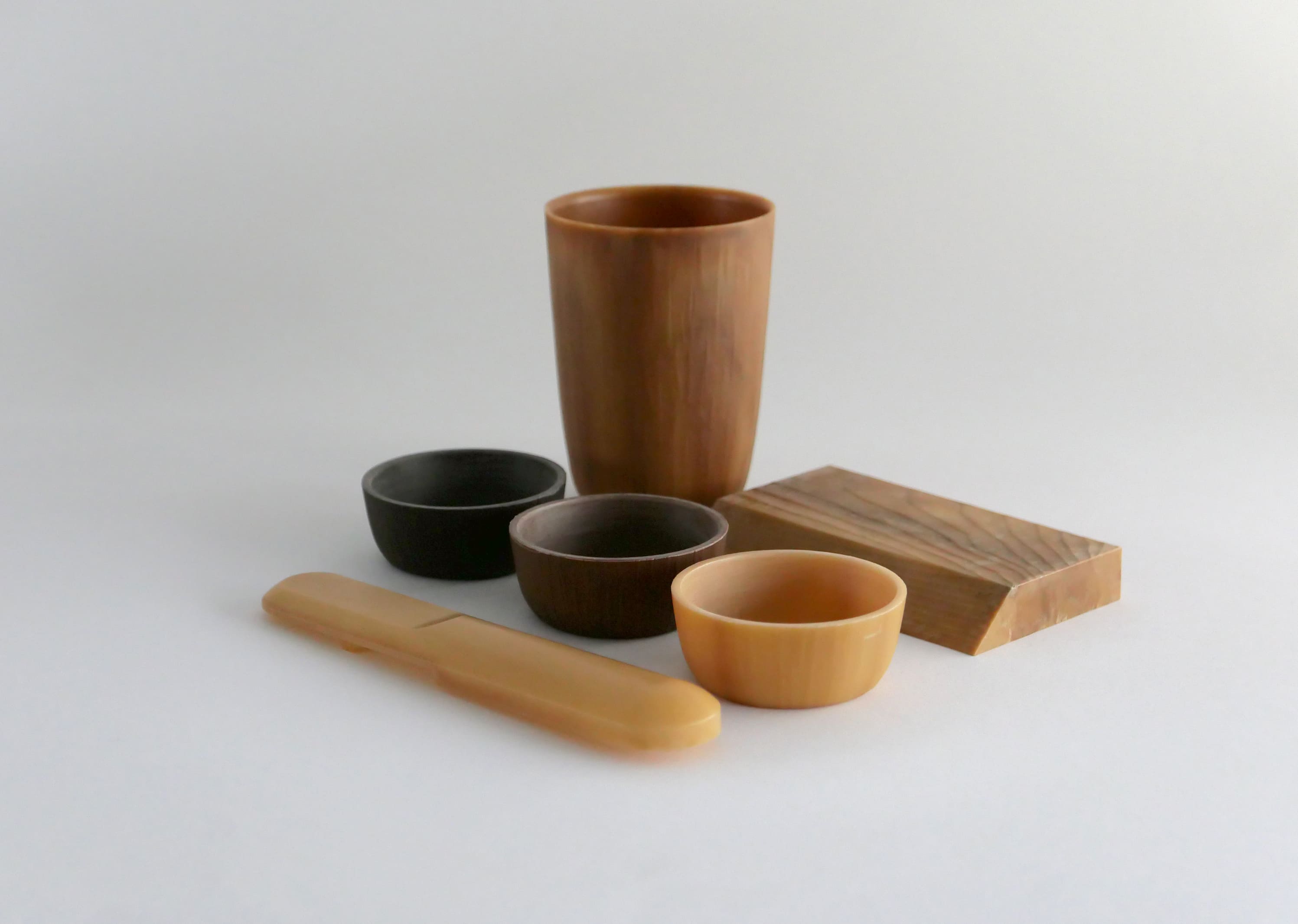 This proprietary compounding technology results in white moulding materials such as kinari, a plant-based solution aligned with circular economy principles. The high concentration of cellulose fibres allows for a wide range of colouring possibilities and, through precise moulding control, enables tonal variations without the use of added pigments – including natural browning effects within the material itself. The result is a refined, wood-like aesthetic.