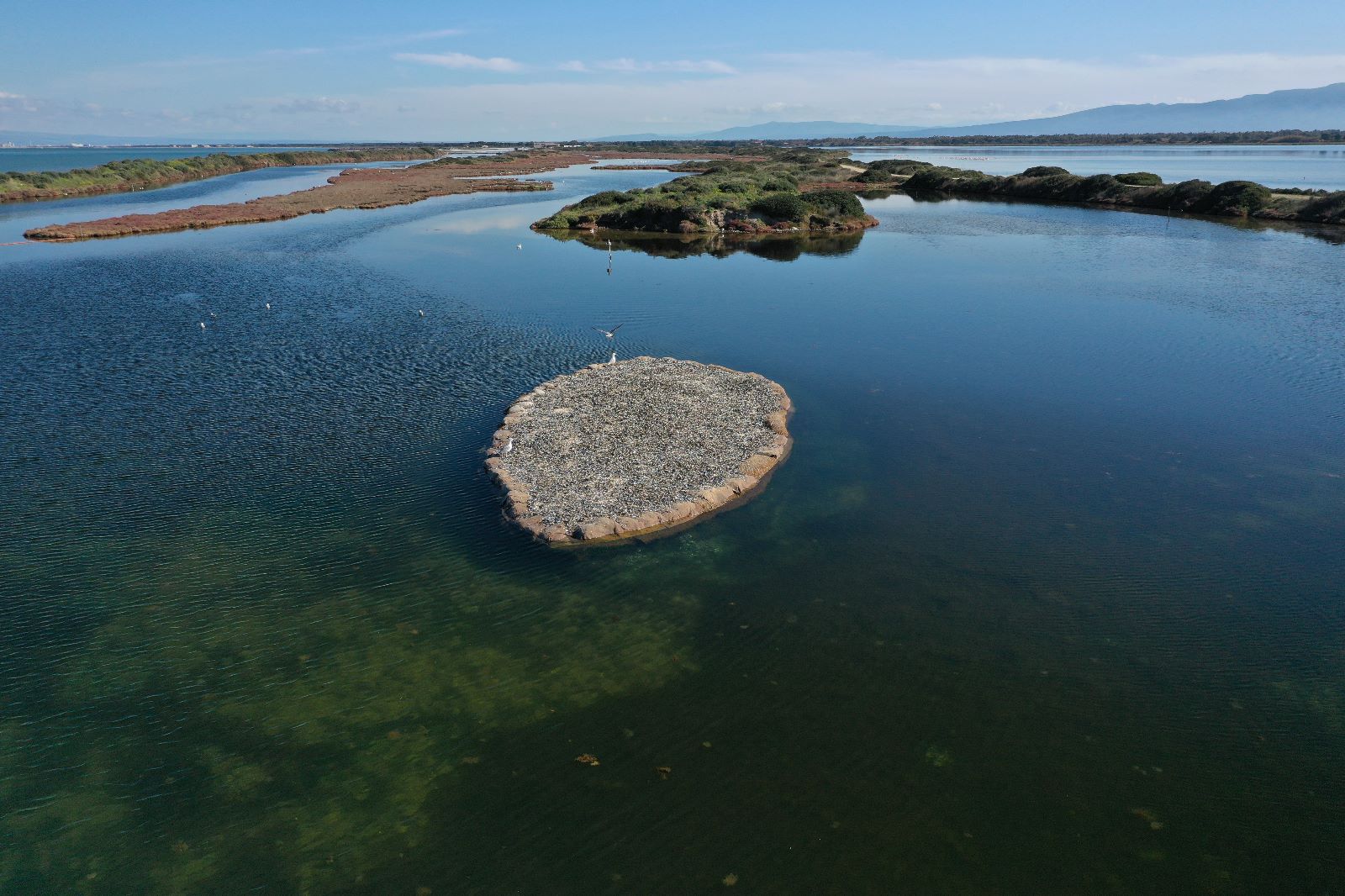 A second project inspired by a circular economy approach was to reuse mussel shells for the construction of artificial islets at the Corru Mannu pond to support the settlement and nesting of local bird species. The islets are formed by burlap bags filled with mussel shells from the processing of Nieddittas. Their surface layer consists of a mixed layer of crushed shells, mussels and byssus to make the surface welcoming to future guests of the islet.
