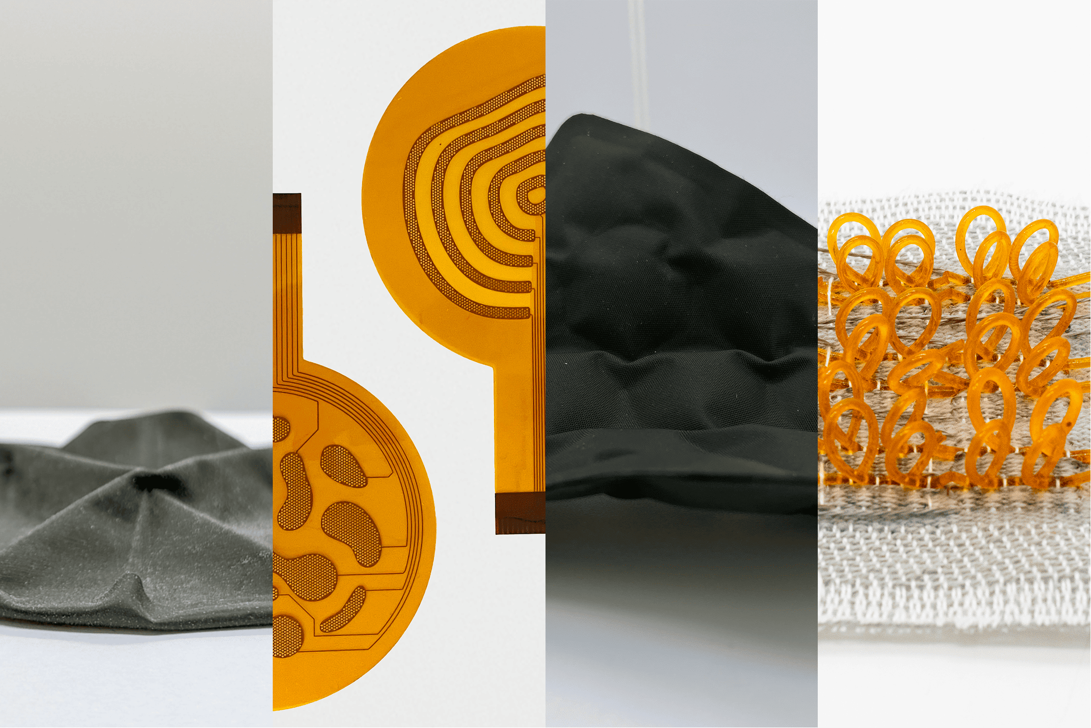 At The New State of Materials exhibition, Soft Interfaces showcases engineered soft materials developed at the Materials Aesthetics Lab of the Eindhoven University of Technology in the Netherlands, highlighting their potential and future applications. These responsive materials envision a future where intelligent, adaptable materials are embedded in everyday objects – from car interiors and home textiles to wearables and furniture – enabling new interactive experiences.
