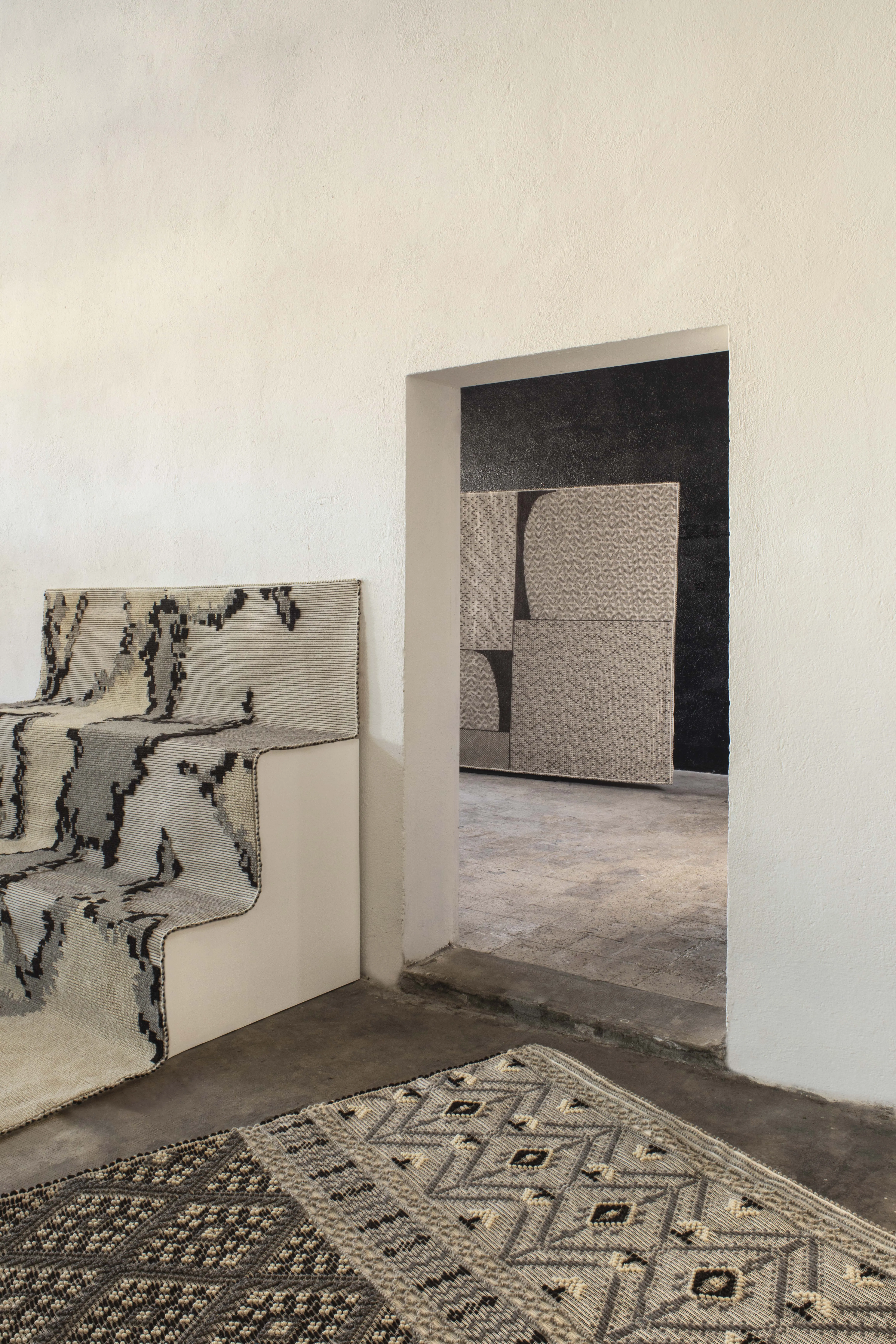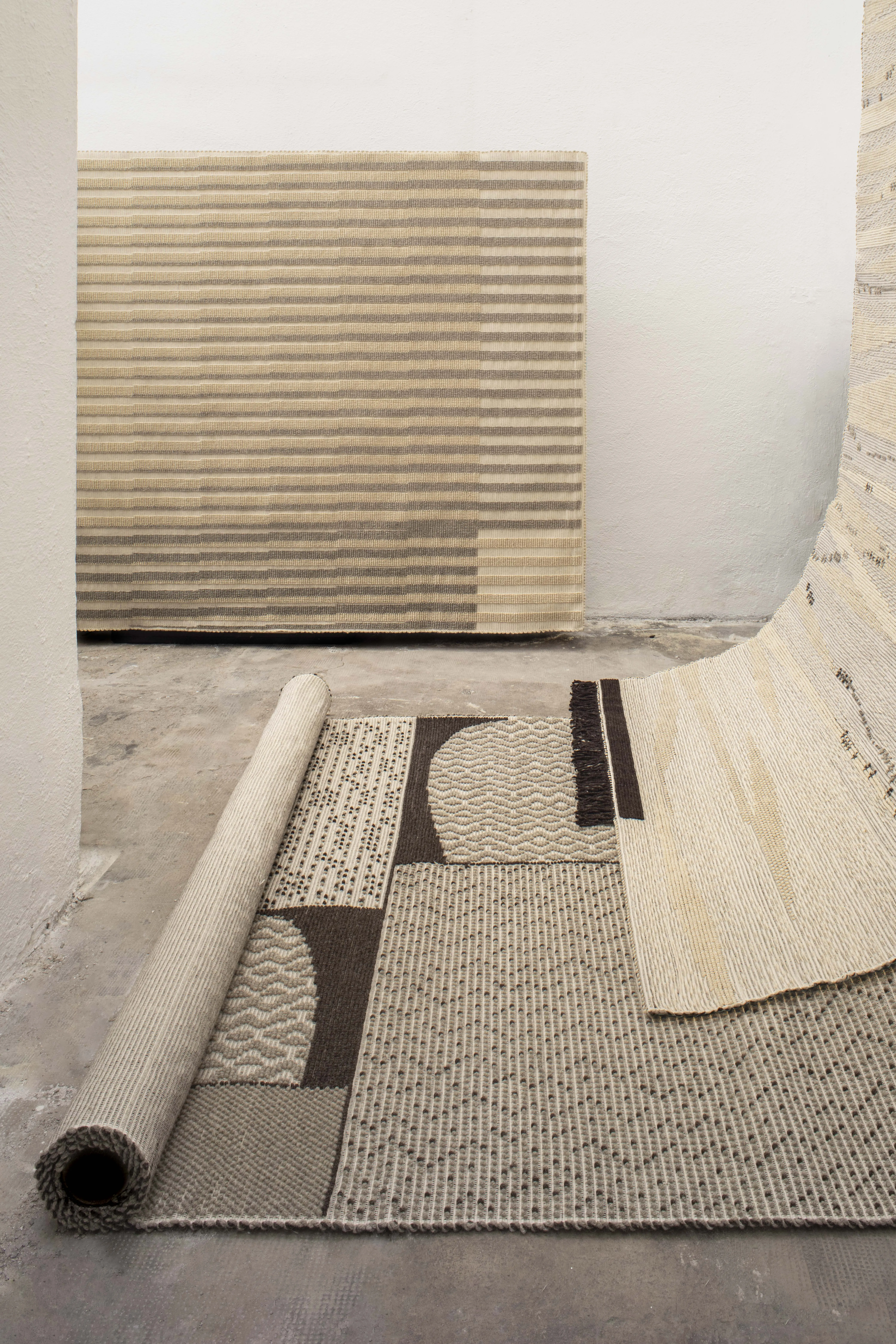 Tinto in Pecora (italian for “Tinged by the Sheep”) is a collection of seven carpet designs, made exclusively with colours derived from the natural fleece of our local sheep. All of these colours are born with no chemical intervention: new, natural-coloured yarns are created by carding different tonalities of natural wool together, from off-white to black, to achieve a final range of seven beautiful shades, going from ecru all the way to deep brown.