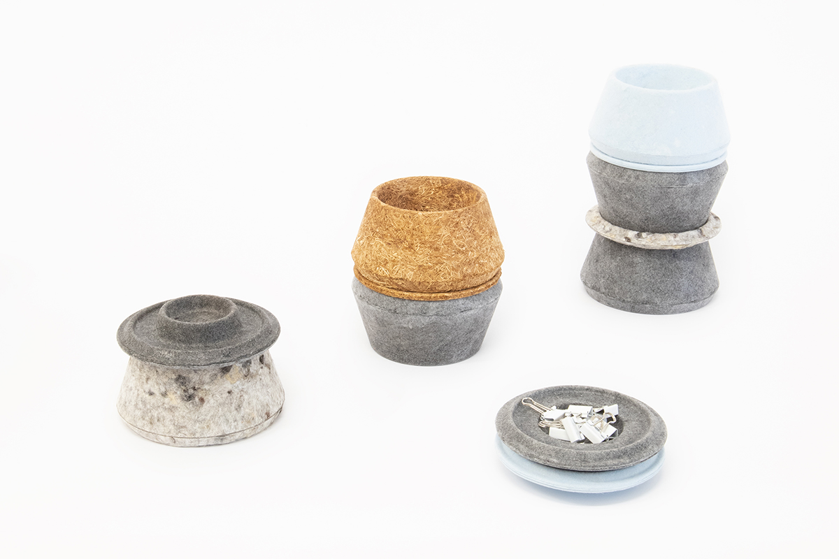 Al Salone Satellite 2018 di Milano i quattro designer hanno presentato una serie di elementi di seduta e divisori che illustrano il potenziale delle fibre pressate come risorsa per l’industria del mobile, riflettendo ulteriormente l’interesse dei designer per la modularità e la materialità .