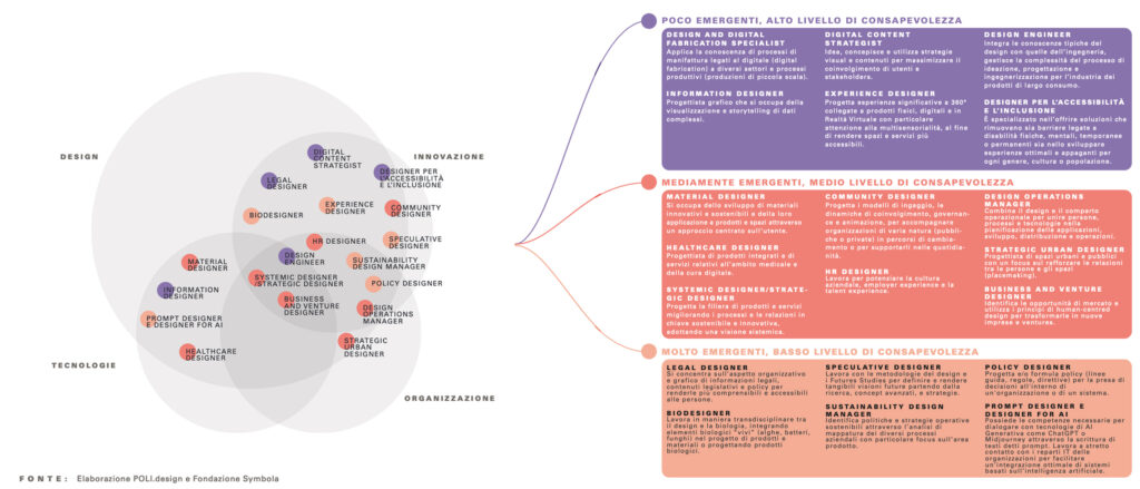 Design Economy, rapporto realizzato da Fondazione Symbola, Deloitte Private e POLI.design e presentato al Museo ADI l’8 aprile, ha dedicato una parte della ricerca alle figure emergenti nell’ambito delle professioni del design che godono il maggior livello di consapevolezza e familiarità tra professionisti e aziende. Tra queste spicca il material designer, ovvero chi “si occupa dello sviluppo di materiali innovativi e sostenibili e della loro applicazione a prodotti e spazi attraverso un approccio centrato sull’utente” (p. 108). Il 58,4% dei professionisti e il 29.1% delle aziende riconosce in questo profilo un modo di fare design rilevante oggi: il valore più alto tra i professionisti.